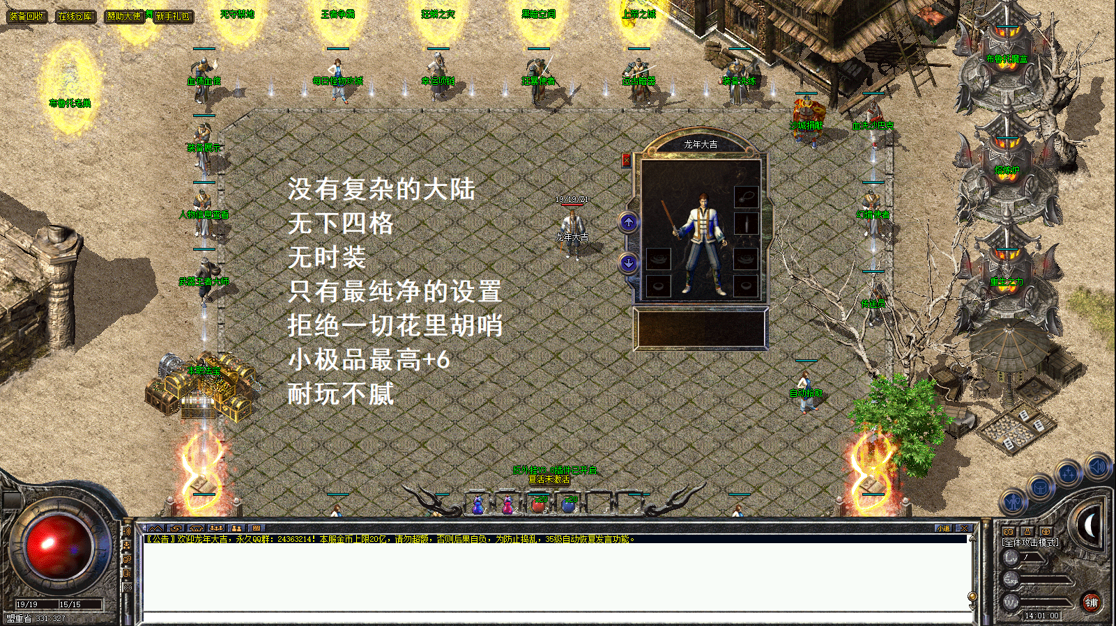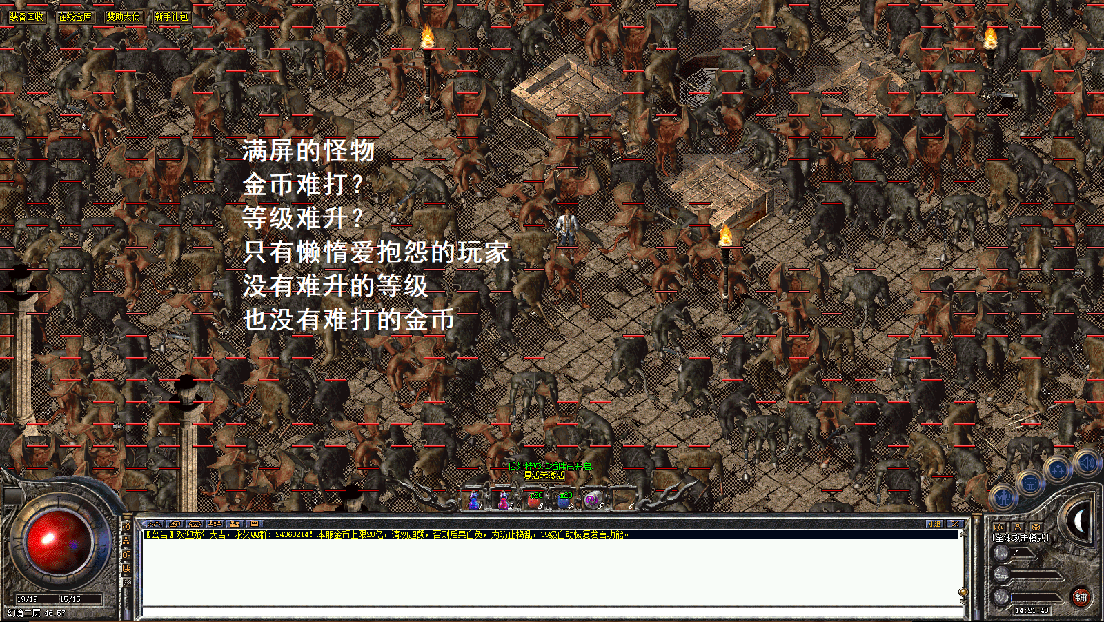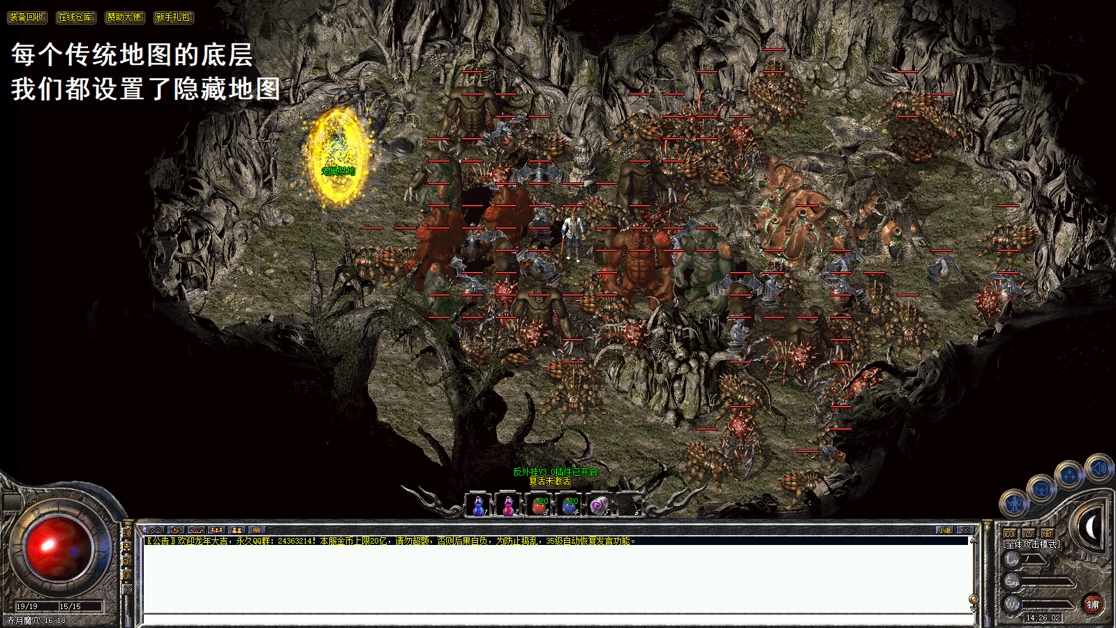 具体攻略及内容介绍请加入QQ群:963993995查看 本服为复古版本!没有复杂大陆!爆率低!不是三天的激情服!没耐心的玩家不要进来!